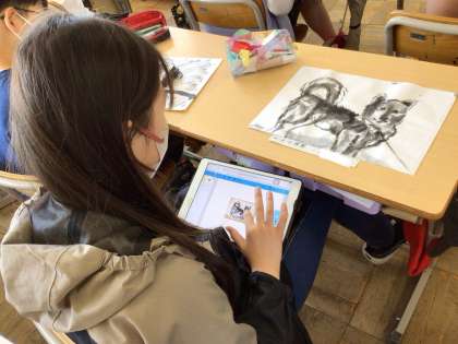 タブレットの発表ノートを使って、作品の紹介スライドを作りました。