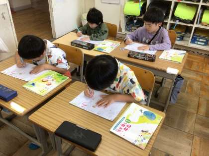 ひらがなが上手に書けるようになってきました。とてもよい姿勢で練習しています。