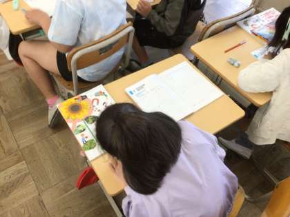 ひまわりとホウセンカの種の特徴を捉えて、スケッチしました。