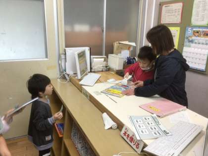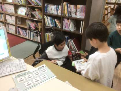 貸し出し、返却の手続きに取り組みました。