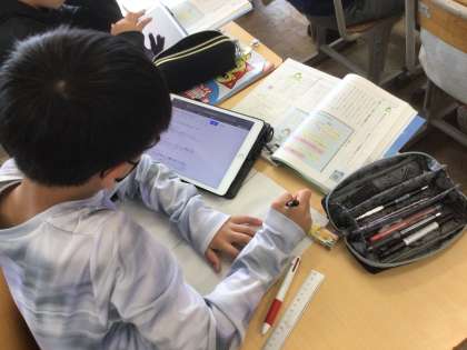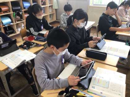 防災についての提案書を作成していくために、タブレットを活用して必要な情報を集めました。