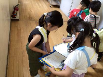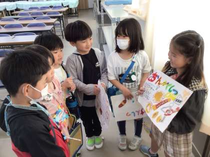 2年生が学校探検を企画してくれました。班ごとにクイズなどをしながらいろいろな教室を回りました。