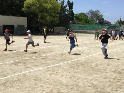 体力テストに向けて、走り出すときの姿勢を意識して、走る練習をしました。