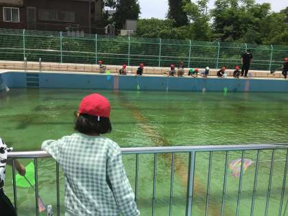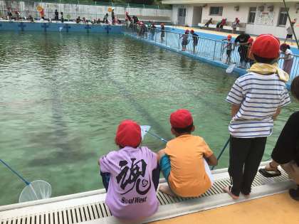 生活科の時間に、学校のプールの生き物調査をしました。