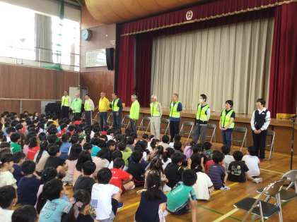 見守りボランティア紹介集会 公開日 2024/05/23 更新日 2024/05/23 学校の特色ある活動 いつも登下校を見守ってくださっている見守り隊の方々を集会で紹介しました。 見守り隊の皆様、いつもありがとうございます。これからもよろしくお願いします。