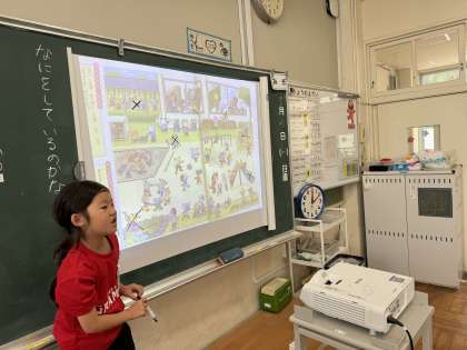 良いことと悪いことの学習をしました。どんなことが良いことで、どんなことが悪いことなのかを話し合いながら考えました。