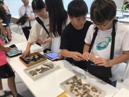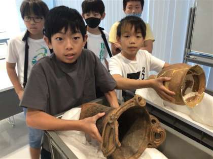 6年 社会科校外学習15 公開日 2024/05/24 更新日 2024/05/24 各学年から 博物館では実際の土器や道具、服などを触ってみたり、展示物から気づいたことをタブレットにまとめたりしました。