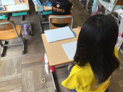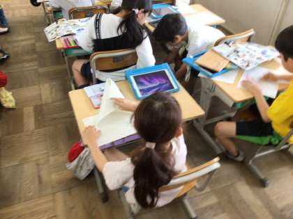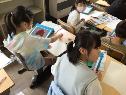 教科書の二次元コードを読み込んで、たくさんの作品を見ながら、自分の作品の構想を練りました。