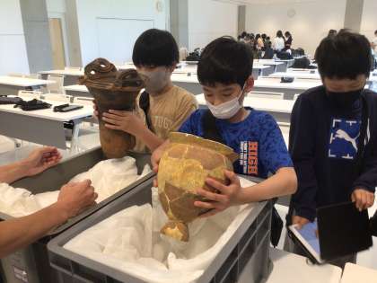 6年 社会科校外学習(続き)31 公開日 2024/05/27 更新日 2024/05/27 各学年から 博物館では実際の土器や道具、服などを触ってみたり、展示物から気づいたことをタブレットにまとめたりしました。