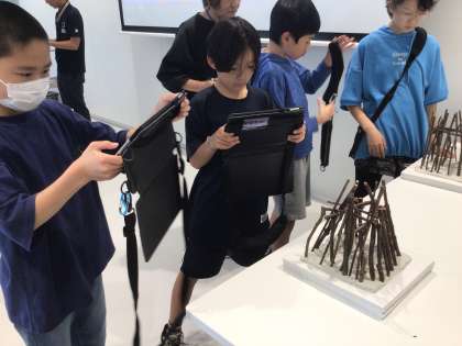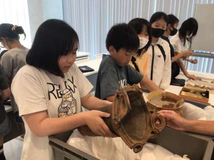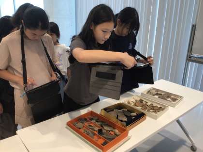 6年 社会科校外学習(続き)34 公開日 2024/05/27 更新日 2024/05/27 各学年から 博物館では実際の土器や道具、服などを触ってみたり、展示物から気づいたことをタブレットにまとめたりしました。