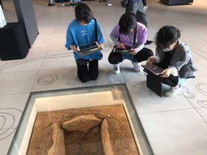 6年 社会科校外学習(続き)35 公開日 2024/05/27 更新日 2024/05/27 各学年から 博物館では実際の土器や道具、服などを触ってみたり、展示物から気づいたことをタブレットにまとめたりしました。