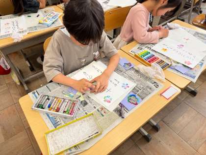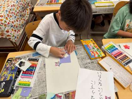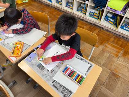 自分のがんばりたいことを書いた後に、クレヨンを使っていろいろな形を描きました。