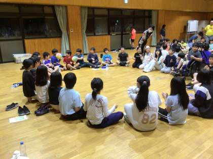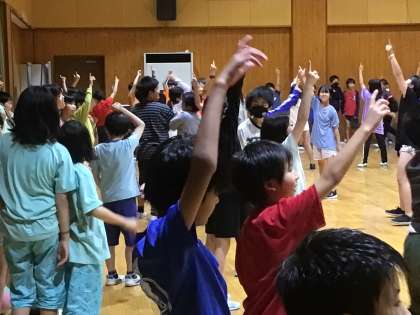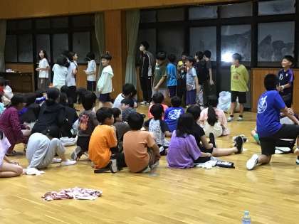 雨風が強く、外でキャンプファイヤーができなかったので、屋内で行いました。