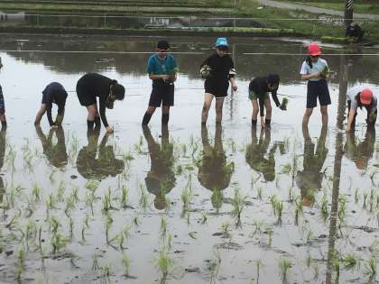 7・8・9組 田植えがんばりました!ー5年総合米プロジェクトー 公開日 2024/06/03 更新日 2024/06/03 各学年から 5年生が泥田遊びをした田んぼに お米の苗を植えました。 特別支援学級の子ども達も 交流学級の仲間と一緒に活動。 地域の方が代かきをしてくださった田んぼに 力を合わせて苗を植えていきました。 この後地域の方のサポートを受けながら 稲の成長の様子を観察したり、お米について学びを深めたりしていきます。 収穫の日が待ち遠しいです。