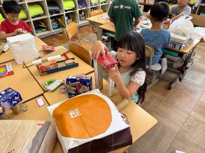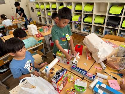 空き箱を使って自分が考えて作品を作りました。素敵な作品がたくさんできました。空き箱のご準備、ありがとうございました。
