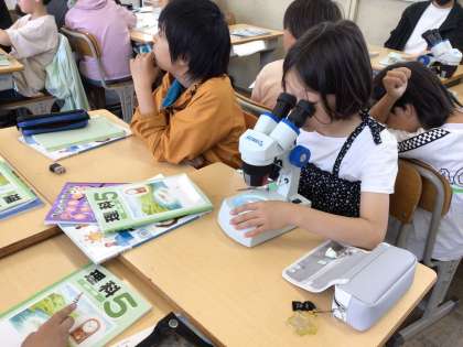 顕微鏡の使い方を学習し、メダカの卵を観察しました。