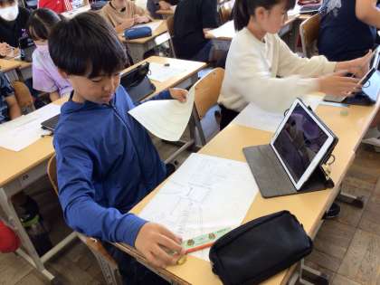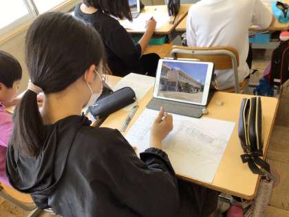 6年 図画工作 思い出の校舎を描こう2 公開日 2024/06/05 更新日 2024/06/05 各学年から 下書きが進んでいます。撮った写真を見ながら、それぞれの形や線の角度に着目して描いていきます。