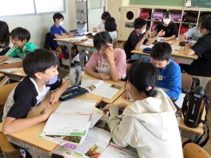 6年 道徳 公開日 2024/06/07 更新日 2024/06/07 各学年から 道徳では、毎時間必ず対話の時間を取り入れています。今日は、自分が日常行っているエコ活動と、教科書の登場人物が行った環境保護活動とを比較して話し合いました。