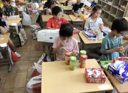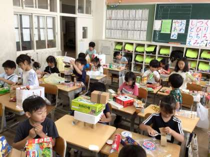 1年生 図画工作科 公開日 2024/06/10 更新日 2024/06/10 各学年から 「はこでつくったよ」 箱の形や色から考えて、動物や乗り物を作りました。箱が開くことを利用して、動物の口にしている子や、丸い形を利用して、乗り物のタイヤにしている子がいました。