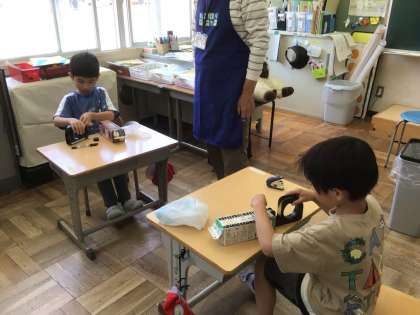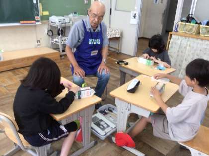 7・8・9組 素敵な楽器完成したよ!(その4)ーものづくりー 公開日 2024/06/10 更新日 2024/06/10 各学年から 「多目的ギロ」は牛乳パックの中にペットボトルキャップを入れ 表面に爪楊枝を並べて貼ることで 振ったり叩いたり、爪楊枝の部分を擦ったり さまざまな音を楽しめる楽器です。 キャップの数や爪楊枝の並べ方で 出る音は千差万別。 それぞれの児童の個性が出てきます。 完成したとき、皆自分の作った音を楽しんでいました。