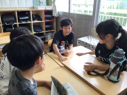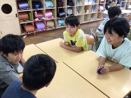 グループでしりとりトークをしました。友達が言ったことをよく聞いて、覚えながら楽しくしりとりを続けました。