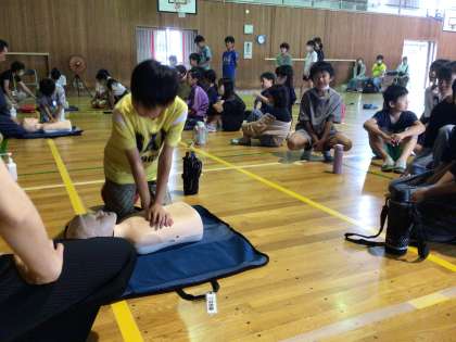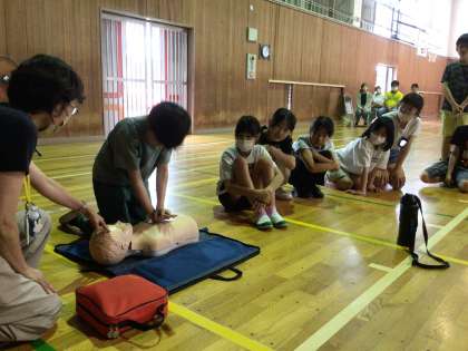 心臓マッサージの仕方やAEDの使い方について、体験しながら学習しました。