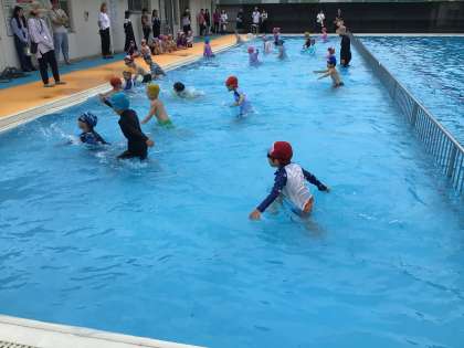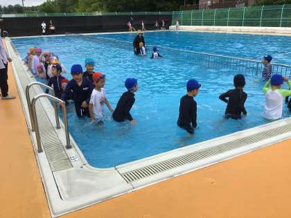 1年生 プール 公開日 2024/06/14 更新日 2024/06/14 各学年から 2・4組のプールです。前回より準備する時間が早くなり、長く取り組むことができました。 みんなでプールの中を歩いて、流れるプールをつくりました。