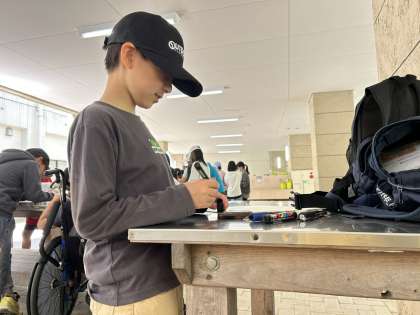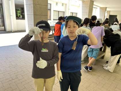 7・8・9組 写真でふりかえる野外学習(その6)ー5年ー 公開日 2024/06/18 更新日 2024/06/18 各学年から 校外学習最後の活動は、思い出のクラフト作り。 野外センター周辺の森から切り出された間伐材を使ってキーホルダーを作りました。 ガスバーナーで焦げ目を入れた後 紙やすりや布でしっかり磨いて木目を出し ポスターカラーで思い思いに色をつけ オリジナルのキーホルダーが完成しました。 子ども達にとって2日間の活動の良い記念になったようです。
