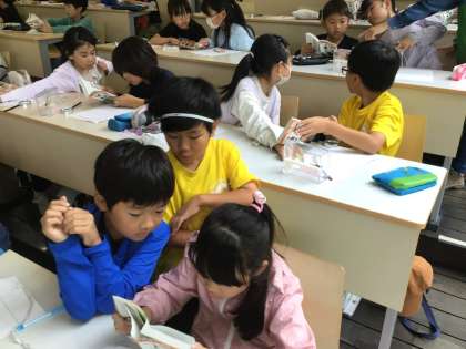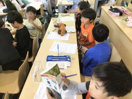 標本で観察したこん虫を、図鑑を使って調べました。