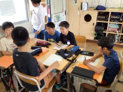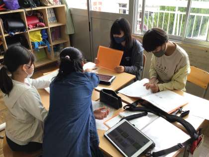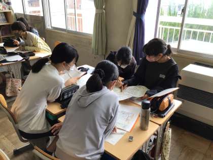 修学旅行の班が決まり、京都の行き先を話し合って決めています。