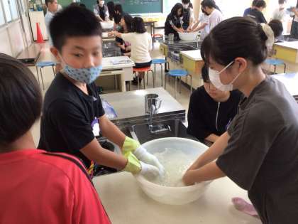 洗濯実習をしました。洗剤の量に気をつけて手洗いをしました。