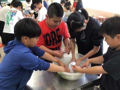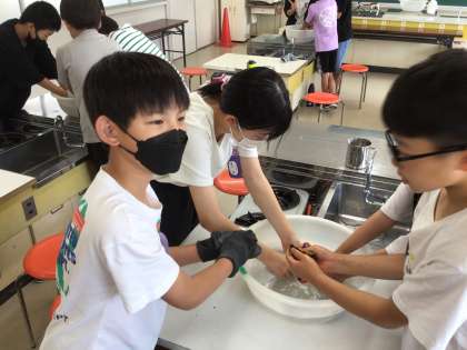 洗濯実習をしました。洗剤の量に気をつけて手洗いをしました。