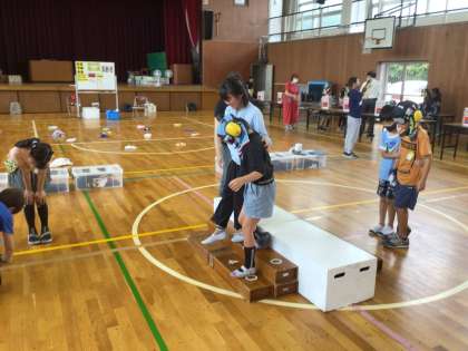 3年総合 高齢者擬似体験 公開日 2024/07/01 更新日 2024/07/01 各学年から 1,2組で、高齢者擬似体験を実施しました。 高齢者の体験だけではなく、2人1組で介助者の体験もしました。