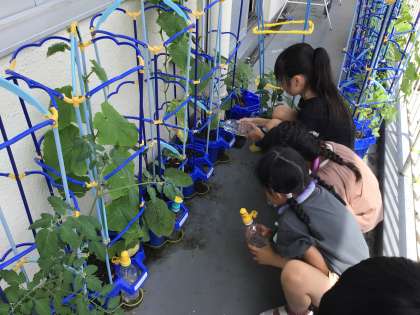 生活科で育てている野菜の実がなり始めました。これから、家でどんな料理にして食べるか楽しみです。