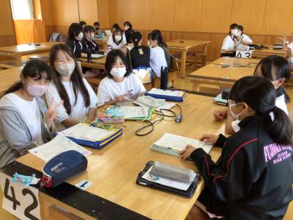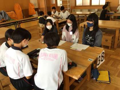昨年度と同じグループで南中学校と総合相談会を開きました。6年生は、修学旅行先で行うPR活動について相談しました。