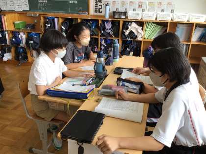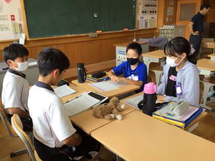 6年 総合相談会4 公開日 2024/07/03 更新日 2024/07/03 各学年から 昨年度と同じグループで南中学校と総合相談会を開きました。6年生は、修学旅行先で行うPR活動について相談しました。