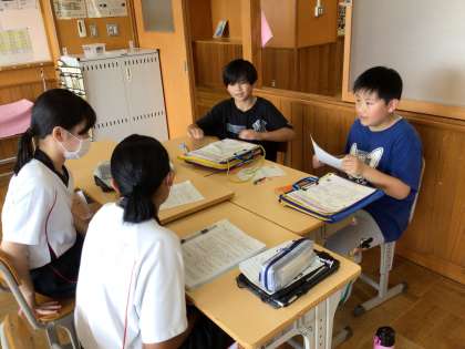 6年 総合相談会5 公開日 2024/07/03 更新日 2024/07/03 各学年から 昨年度と同じグループで南中学校と総合相談会を開きました。6年生は、修学旅行先で行うPR活動について相談しました。
