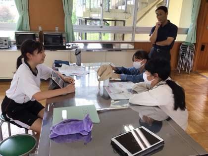 昨年度と同じグループで南中学校と総合相談会を開きました。6年生は、修学旅行先で行うPR活動について相談しました。