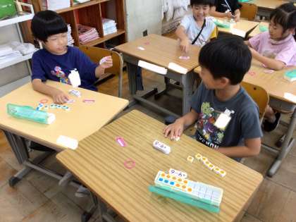 1年生 算数科 公開日 2024/07/05 更新日 2024/07/05 各学年から ひきざんカードを使って、お互いに問題を出し合いました。普段の宿題で練習していることを思い出して、頑張って答えていました。