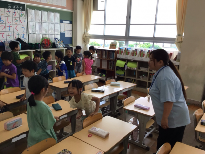 ALTのメリンダ先生と一緒に自己紹介ゲームをしました。みんな大盛り上がりでした。