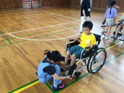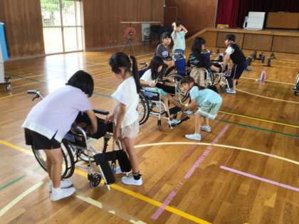 3年総合 車椅子体験 その2 公開日 2024/07/09 更新日 2024/07/09 各学年から 福祉を理解する実践教室として、「車椅子体験」を実施しました。 実際に車椅子に乗ったり介助者の体験をしたりすることで、普段とは違う視点で学ぶことができました。