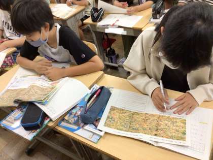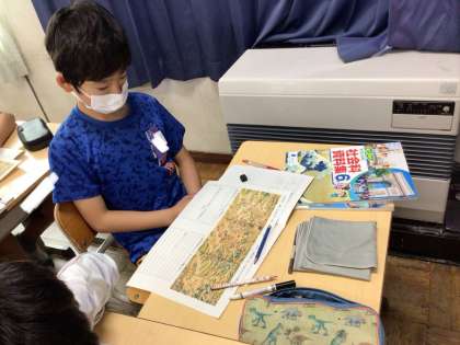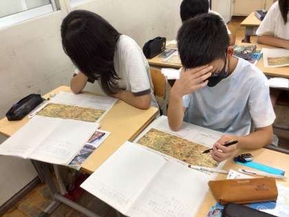 長篠の合戦の屏風絵から、当時の戦いの様子について話し合いました。