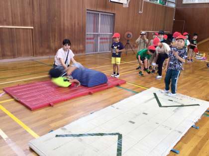 2年体育 マットあそび 公開日 2024/07/17 更新日 2024/07/17 各学年から 体育の授業でマットあそびをしました。前ころがりやろくぼく逆立ちなど、いろいろなマット遊びを楽しんでいます。