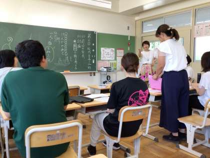 7月23日 第二回校内ミニ研修 英語指導の復習と国語科、詩で討論する方法を楽しく学びました。