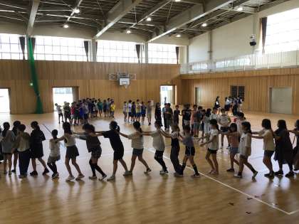 9月から再スタートということで学年集会を行い、新しい体育館でレクリエーションをしました。