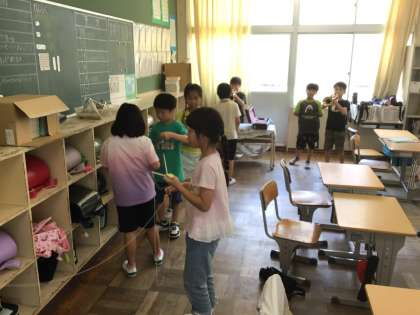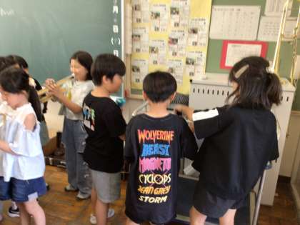 音の聞こえるときにものがふるえていることを、たくさんの楽器を使って確かめました。