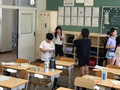 3年理科 音のふしぎ 公開日 2024/09/05 更新日 2024/09/05 各学年から 糸電話を作って、糸のふるえを感じたり、手で糸をつまんでふるえを止めたりしました。 また、糸と糸をからめて4人でしりとりしてみました。