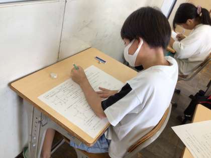 夏休み明けの算数の一斉テストがありました。中学校に向けて、間違えた問題を復習できるといいですね。