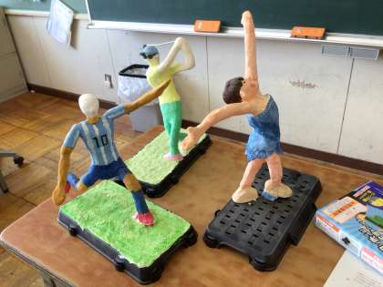 図画工作では、将来の自分を紙粘土と鉄芯で表現します。