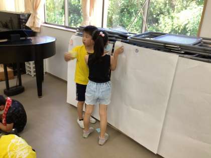 体験を通して大変だと思うこと、街中で大変だと思うこと、誰にも優しく住みやすい街にする方法をふせんに書いて貼りました。